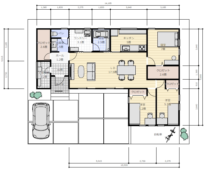 最低3LDK、寝室7畳ぐらい、クローゼット付き子供部屋2つ、