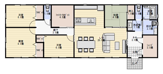 今回のプランは35坪4LDKの平屋の間取りになります。