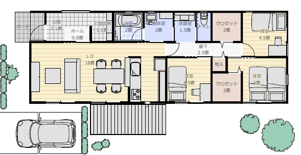 低予算で建てる小さな平屋の間取り図 平屋間取り 3年前 建物の規模: 25坪3LDK平屋の間取り 間取りを作成していただきたいのですが。 このように、玄関、水回りを北側に、 キッチンも、脱衣室に近めで、 LDKは18畳希望 居室スペースとLDKを分けて、 居室は収納無しで4畳半ほど。 収納は、まとめて、1ヶ所で。 独立洗面所は1畳ほどで。 24~26坪が理想です。 ローコスト希望です 宜しくお願い致します。