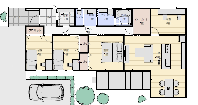 脱衣室 2畳 浴室 2畳 1坪タイプ