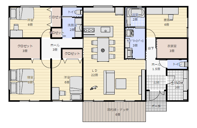 平屋 間取り 4ldk トイレ 2つ 長方形