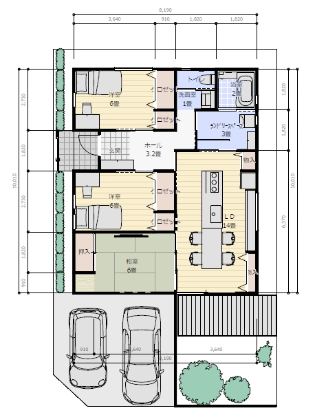 普通自動車2台分の駐車スペースが必要です。