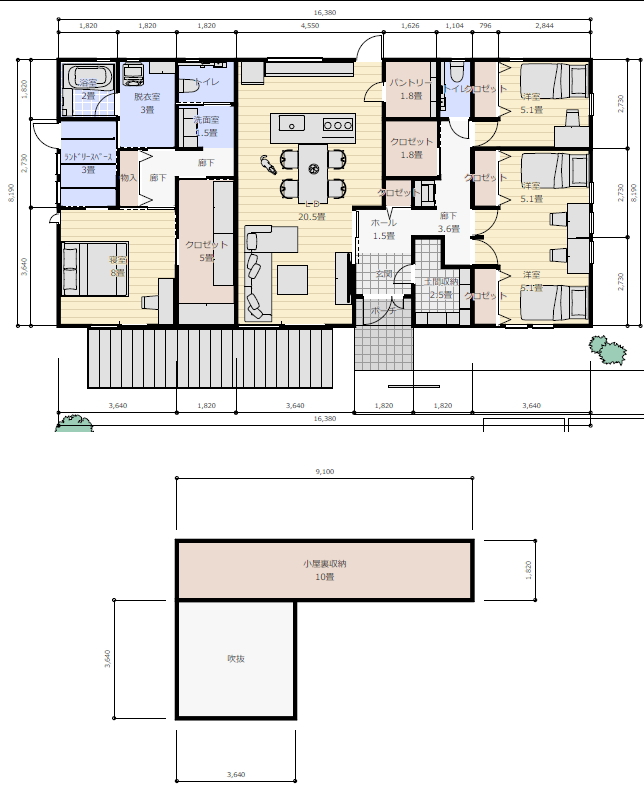 ・4LDK(リビングはアイランドキッチン設置、寝室1、子供部屋3)