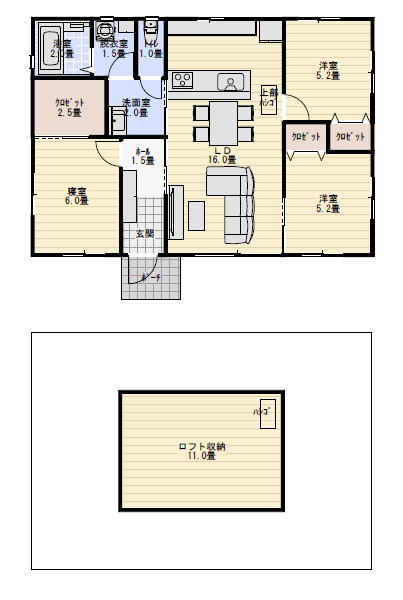23坪という小さめの面積の平屋になりますので廊下などスペースの無駄を省き