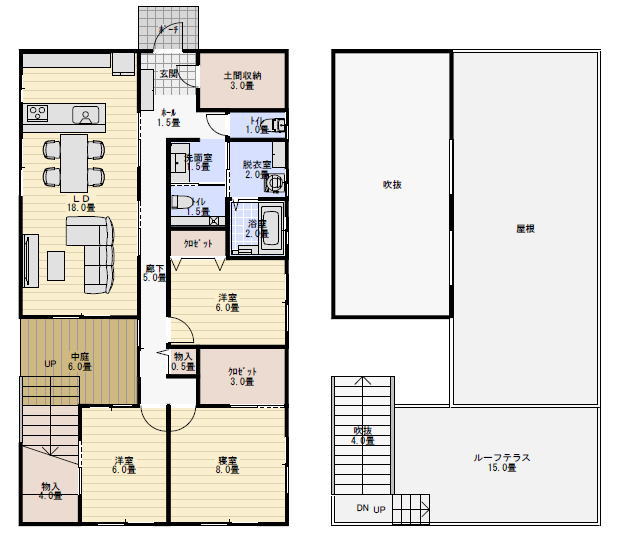 靴で外の屋上に登っていくルーフテラスのプランなっているので