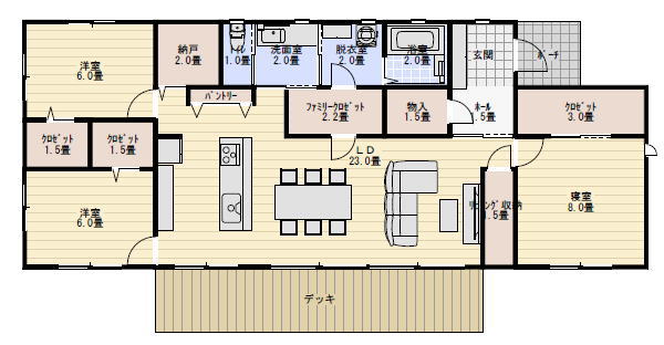 廊下のスペースが全くないムダのないプランになります。